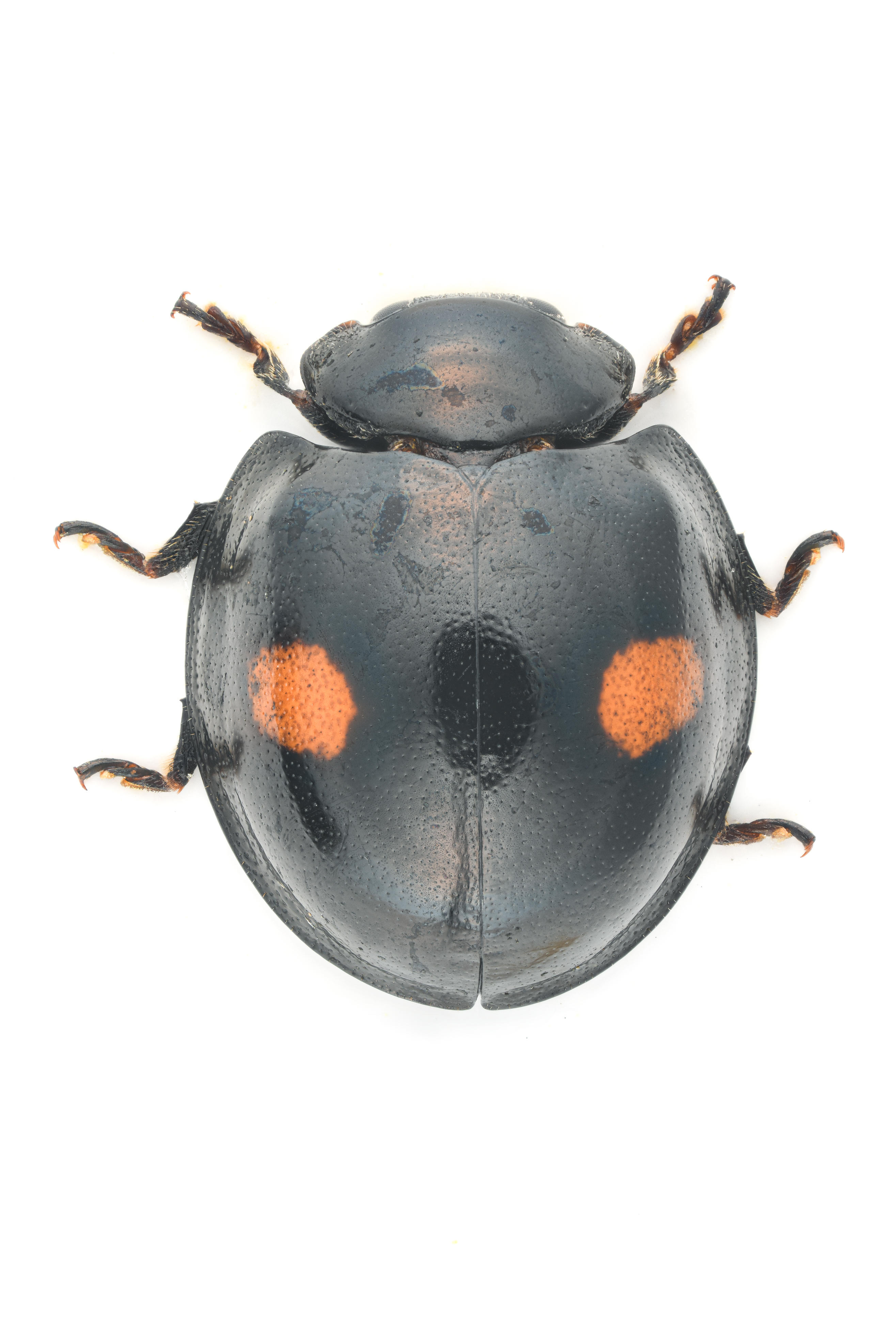 Skjoldlusmarihøne er en middels stor og karakteristisk art som er svart med to store røde flekker på dekkvingene. Arten er vanlig på Østlandet og finnes på ulike løvtrær der den ofte sitter på bark og kvister på jakt etter skjoldlus.
