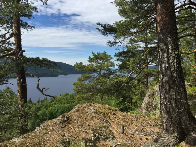 Habitat for øyeflekket marihøne Anatis ocellata ved Tyrifjorden, Hole i Buskerud.