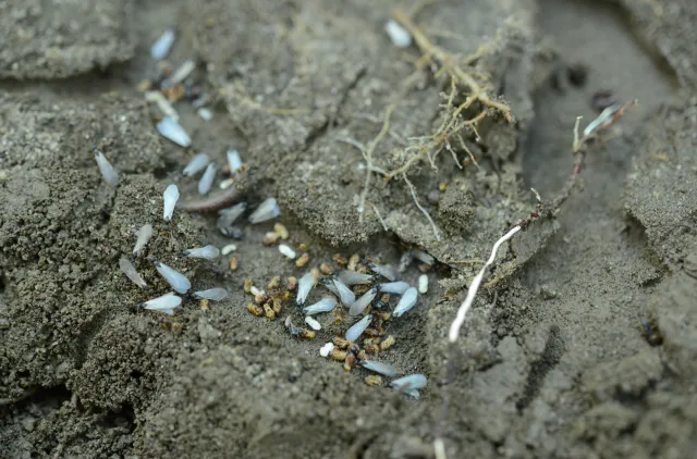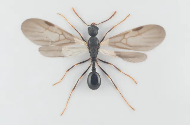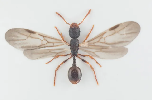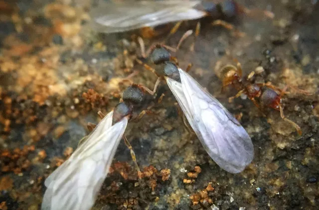 Nyklekte dronninger av skyggemaur Stenamma debile i bol. Nedre Timenes, Kristiansand i Vest-Agder.
