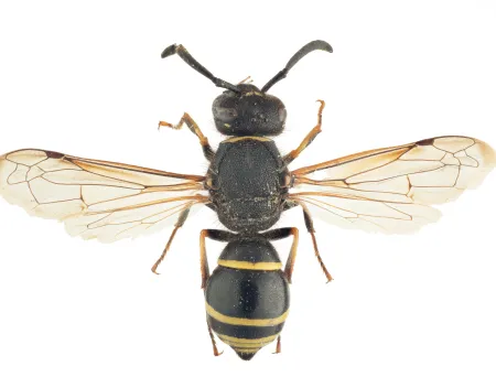 Artsdatabanken: Bringebærveps Gymnomerus laevipes (Shuckard, 1837)