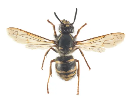 Skoggjøkveps er sosialparasitt på skogveps og ser ut til å følge vertens utbredelse i Norge. Arten ligner på sin vert og har som den en karakteristisk svart flekk på munnskjoldet, men i tillegg to kraftige tenner langs munnskjoldets framkant som er typiske for gjøkveps. Arten er relativt nylig oppdaget i Norge, men er ikke uvanlig i områder med mye skogveps.