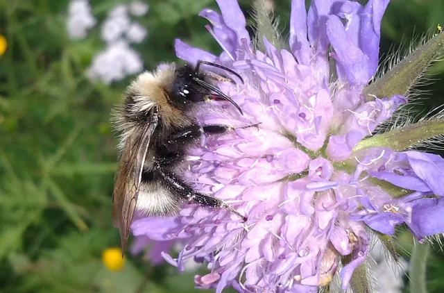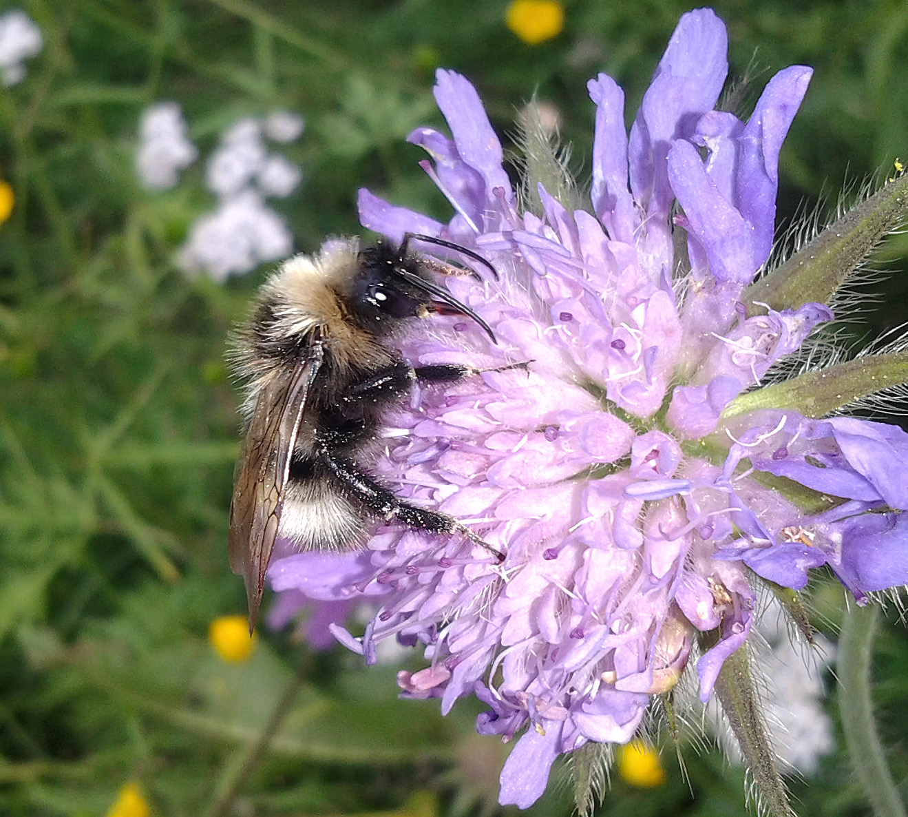 Blåknapp er en populær plante blant humlene når sommeren er på hell og de fleste andre plantene er avblomstret, Aurskog-Høland i Akershus.