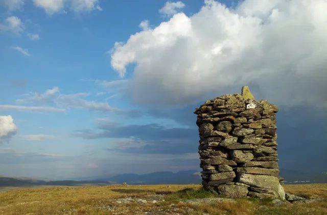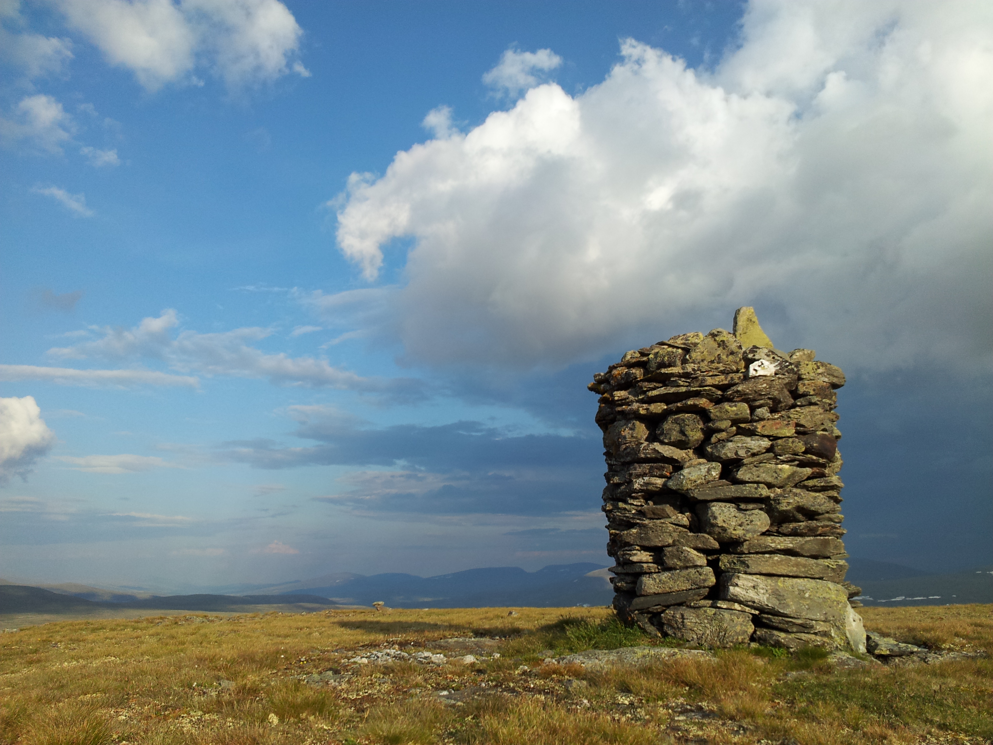 Fjellheier med kalkrik berggrunn i mellomalpin sone er perfekte habitater for fjellhumler (Alpinobombus). Bildet er fra toppen av Finnshøa (1440 moh.), Dovrefjell (Oppdal, Sør-Trøndelag).