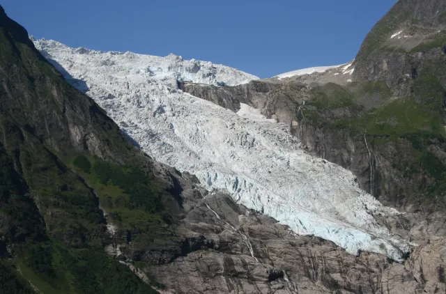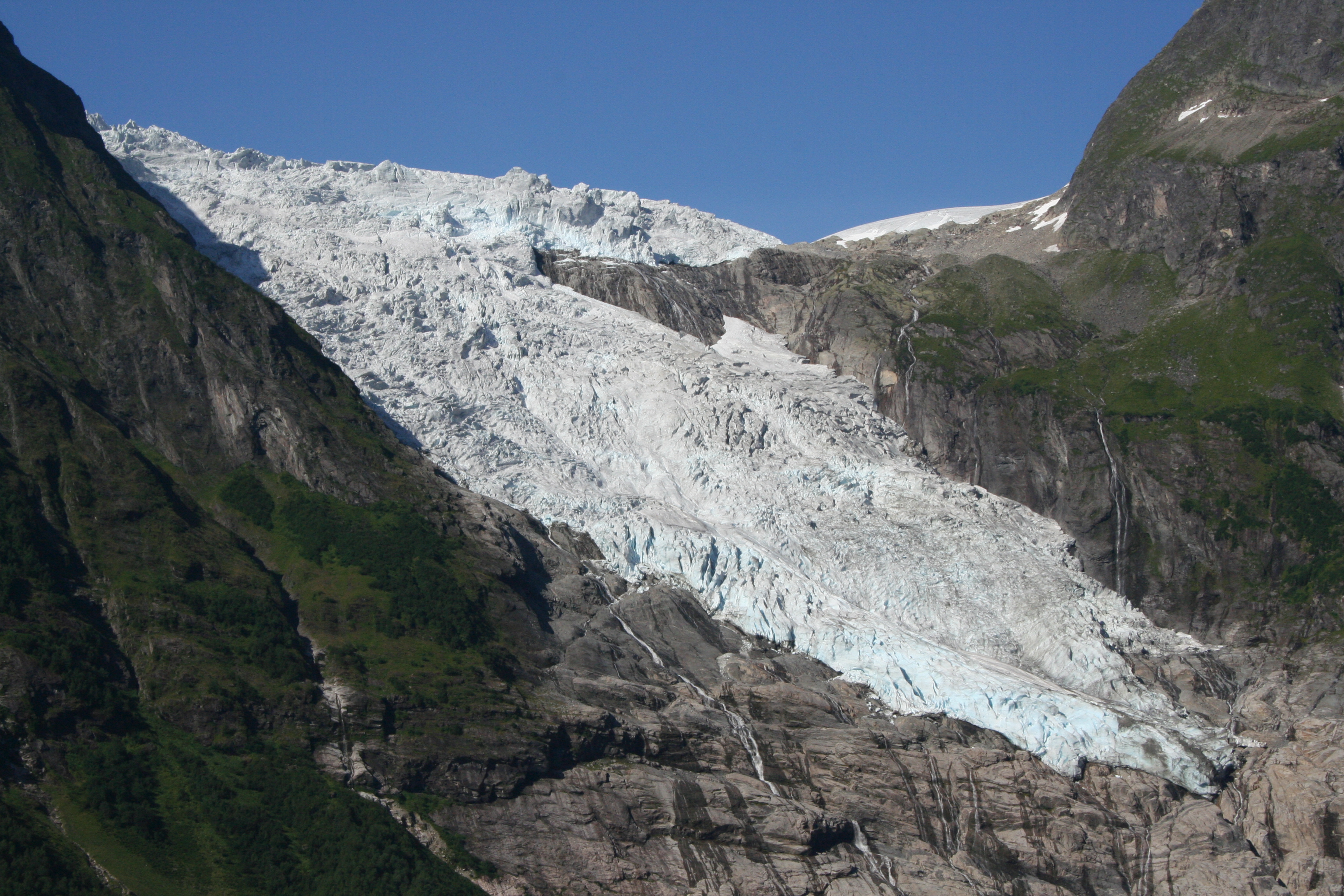 Det er stor enighet om at klimaendringer er en viktig årsak til at enkelte humlearter er på tilbakegang. Bildet viser nedsmelting av Bøyabreen i Sogn og Fjordane.