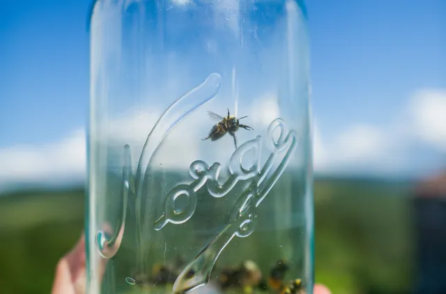 Det er ikke alltid like lett å artsbestemme humler i felt. Av og til kan det da være lurt å fange dem i et glass, slik at de kan studeres nærmere.
