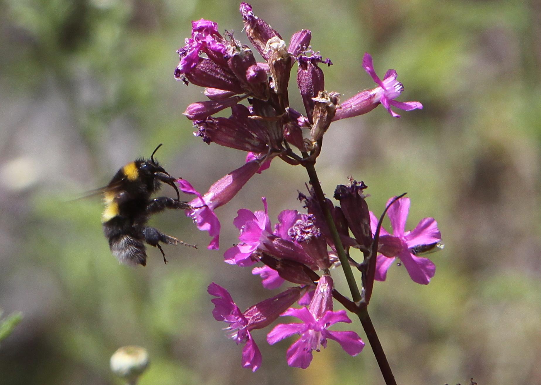Hann av hagehumle Bombus hortorum på skogsvinerot, Sokndal i Sør-Trøndelag.