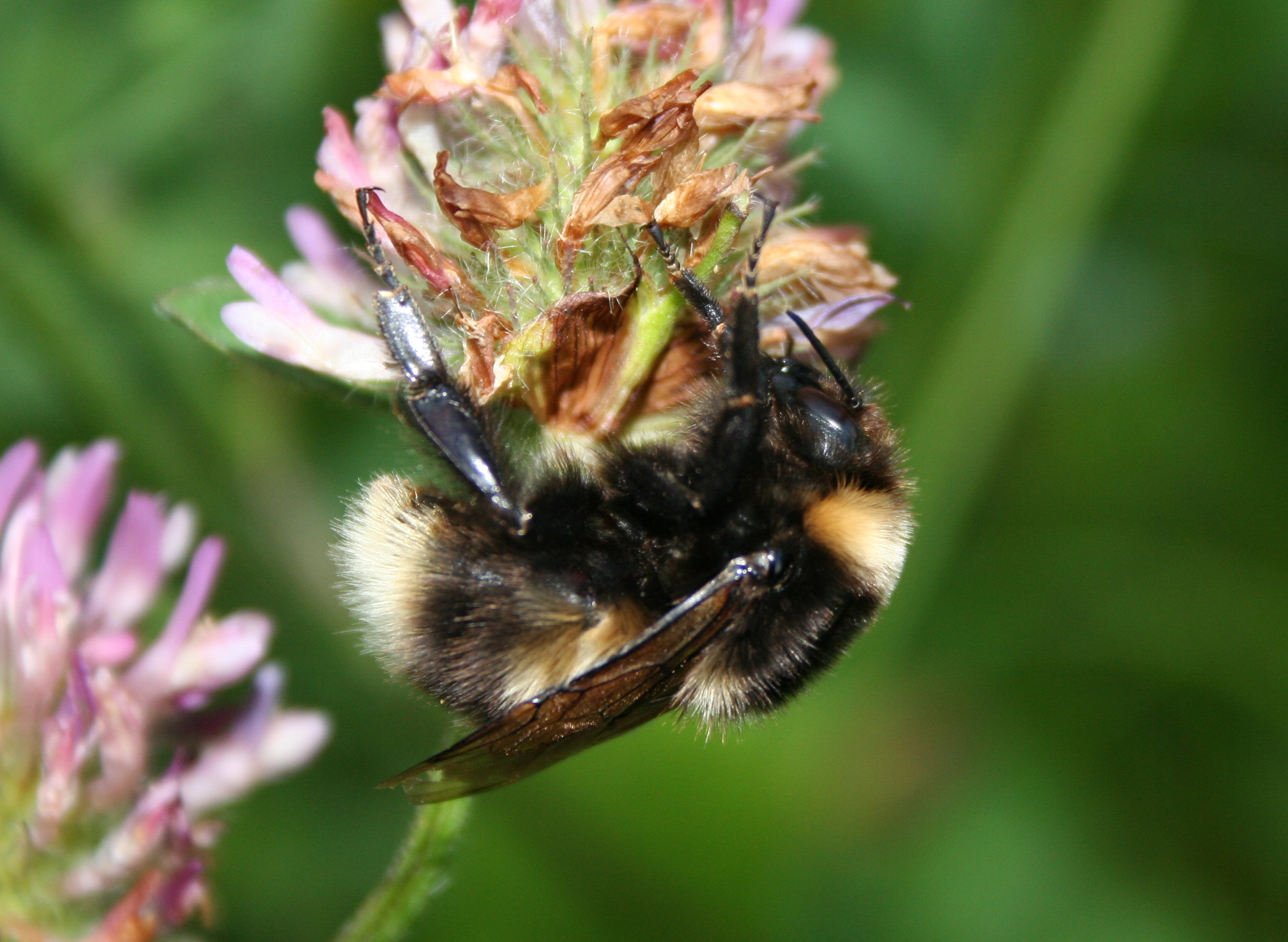 Dronning av hagehumle Bombus hortorum på rødkløver, Rinnleiret i Levanger, Nord-Trøndelag.