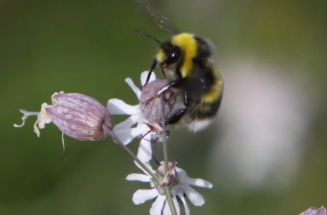 Hann av lynghumle Bombus jonellus på engsmelle, Kongsvoll i Oppdal, Sør-Trøndelag.