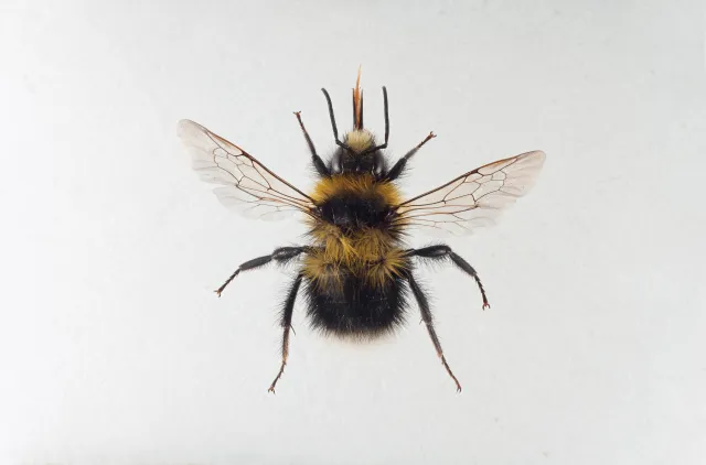 Utsnitt av framkropp hos lynghumle Bombus jonellus.
