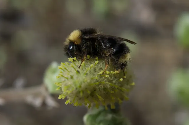 Dronning av lynggjøkhumle Bombus flavidus på Salix, Orkelsjøen i Oppdal, Sør-Trøndelag.