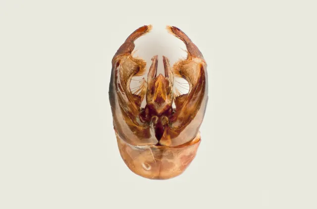 Genitalia av lynggjøkhumle Bombus flavidus.