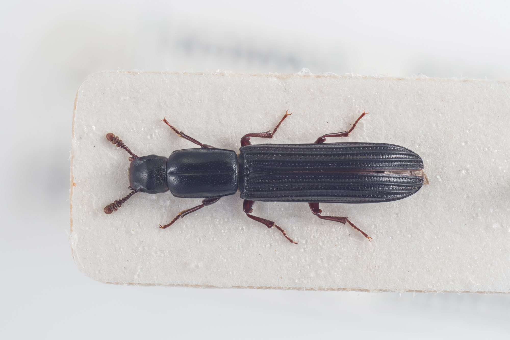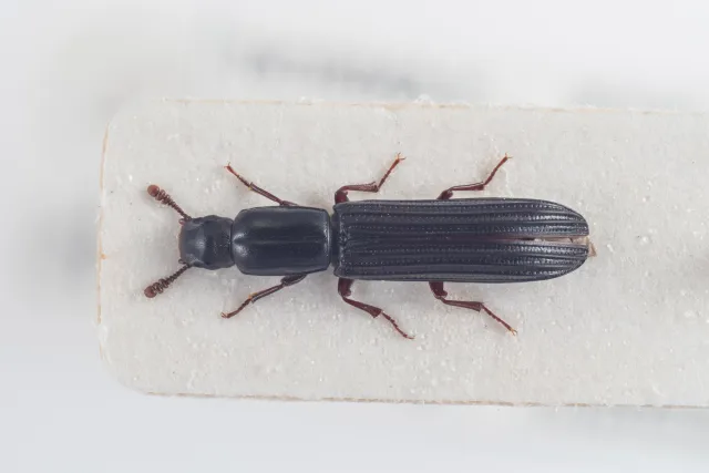 Mattbillen Colydium elongatum er knyttet til barkebilleganger på grove, solbelyste trær, særlig av eik og gran.