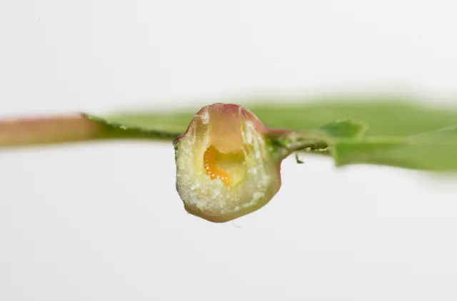 Galler og larve på gulmaure. Bildet er tatt på Hvasser.
