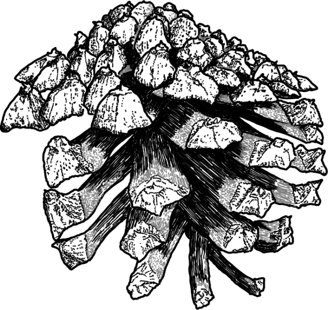 Her ser ein tydeleg den lange, pyramideforma tappen på kongleskjela øvst på kongla, der ho opnar seg.