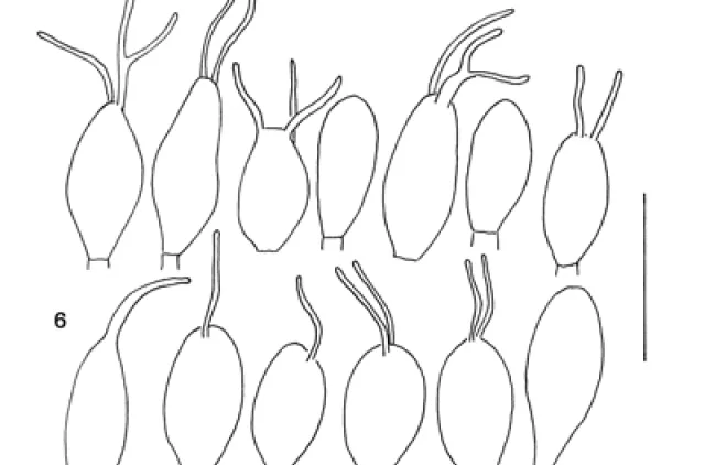 Artsdatabanken: Hårsokkelhette Mycena aciculata (A. H. Sm.) Desjardin & E. Horak