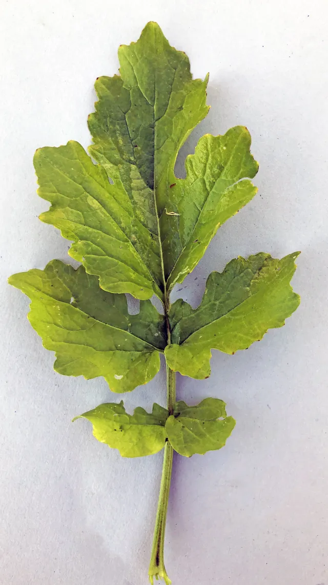 Blada er ujamt djupt buktflika (som her hos underarten ugraskvitsennep) eller dobbelt buktflika (som hos underarten flik-kvitsennep).