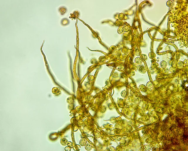 Trichia erecta kan ha glatte eller piggete elaterer (og med fine langsgående striper), men alltid med kort spiss (4–8 µm). Arten er primært knyttet til død ved/bark.