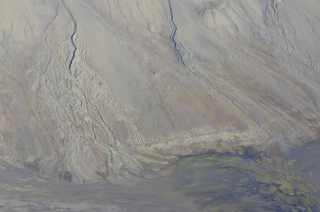 Flomskredformer forekommer ofte i kombinasjon med snøskred, sørpeskred og steinsprangavsetninger fra den samme skråningen. Svea, Svalbard.