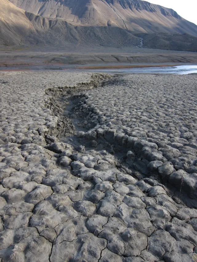 Termokarst i frostmarksformet glasiolakustrine finkornete løsmasser. Sveabukta, Svalbard.