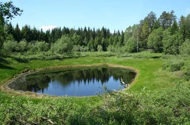 Liten dødisgrop med tjern i breelvmateriale. Nordkulpen ved gardermoen, Akershus.