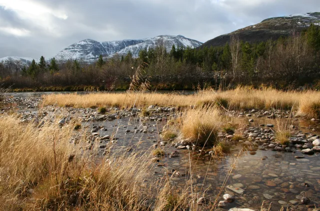 Frie vannmasser i ferskvann, kalkfattig elvevann med moderat gjennomstrømming (Atnaelva, Folldal, Hedmark).
