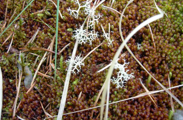 Levende planter på land, eksemplifisert ved rødmuslingmose (Mylia taylorii), som er substrat for flere mose- og lavarter (Helsetnakken, Volda, Møre og Romsdal).