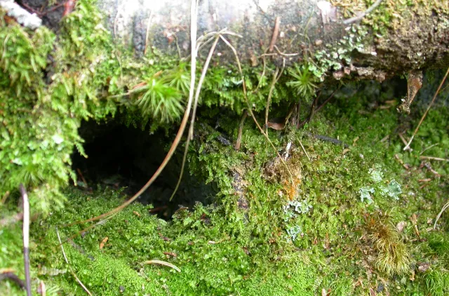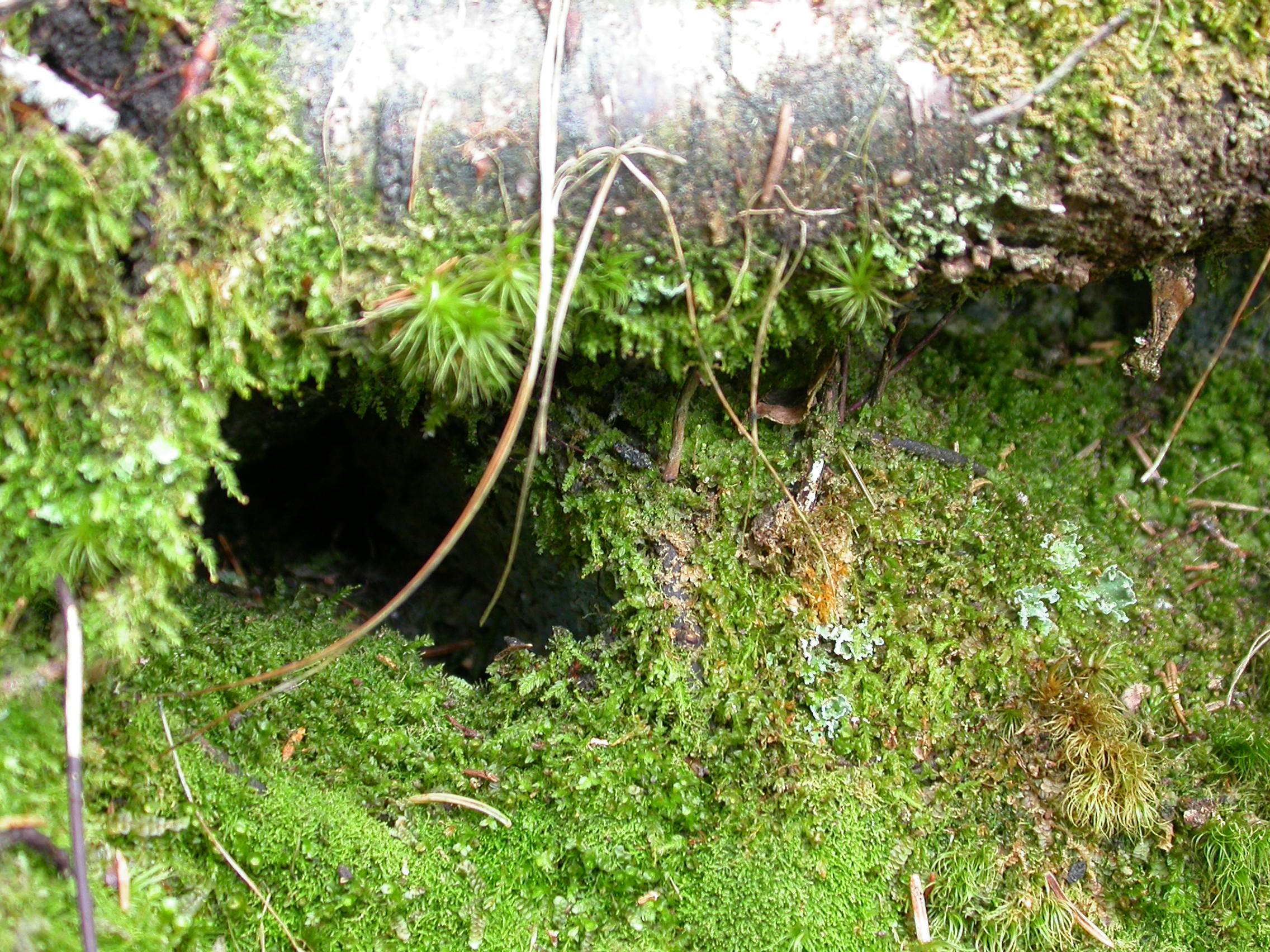 Levende dyr og dyrebo, eksemplifisert ved musehull i ’lomme’ under bjørkerot. Grunntype TS08-05 I smågnagerbo og -ganger. (Grytdalen, Tørdal, Drangedal). Telemark).