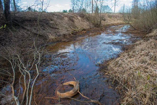 Innsjøbunn preget av kronisk kjemisk påvirkning nær et avfallsdeponi ved Tyrifjorden i Modum kommune. Vikersund, Modum, Buskerud.