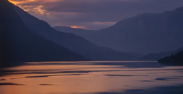 Hornindalsvatn i Stad kommune (50 km2 og største dyp 514 m) med et enkelt fiskesamfunn bestående av ørret Salmo trutta, røye Salvelinus alpinus, ål Anguilla anguilla og trepigget stingsild Gasterosteus aculeatus. Hornindal, Stad, Sogn og Fjordane.