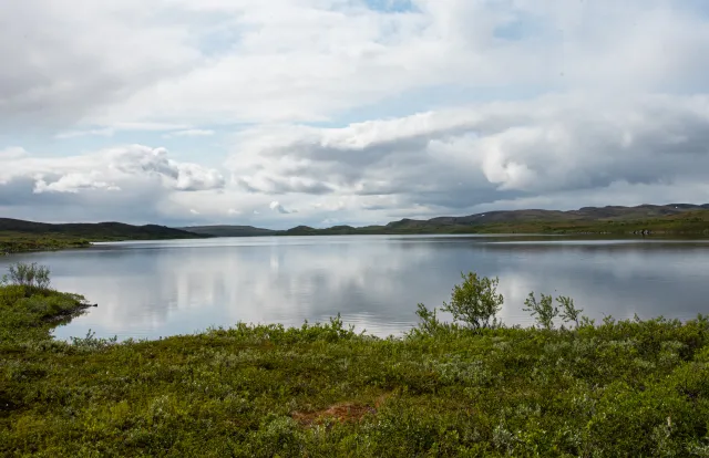 Sommervann (5,7 km2 og største dyp ca. 30 m), som har et enkelt fiskesamfunn med ørret *Salmo trutta* og røye *Salvelinus alpinus* (Tana kommune). Ifjordfjellet, Tana, Finnmark.