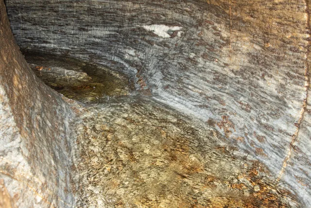 Grottesjø-vannmasser fra innløpet til en av grottene i Sandågjelet, Kongsberg kommune. Sandågjelet, Kongsberg, Buskerud.