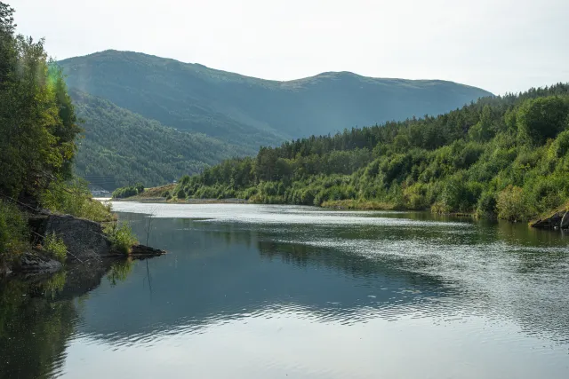 Nye innsjøvannmasser i elvemagasinet i Gudbrandsdalslågen ved Rosten i Dovre kommune (0,1 km2, største dybde ca. 18 m). Rosten, Dovre , Oppland.