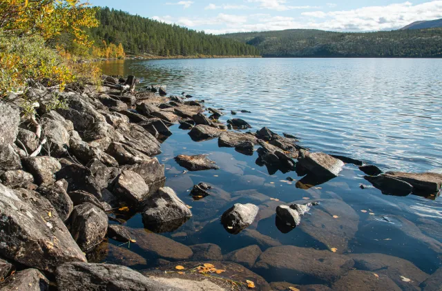 Svært kalkfattig (0,9 mg Ca/l) og eksponert fast strandkant i Atnsjøen i Stor-Elvdal kommune.