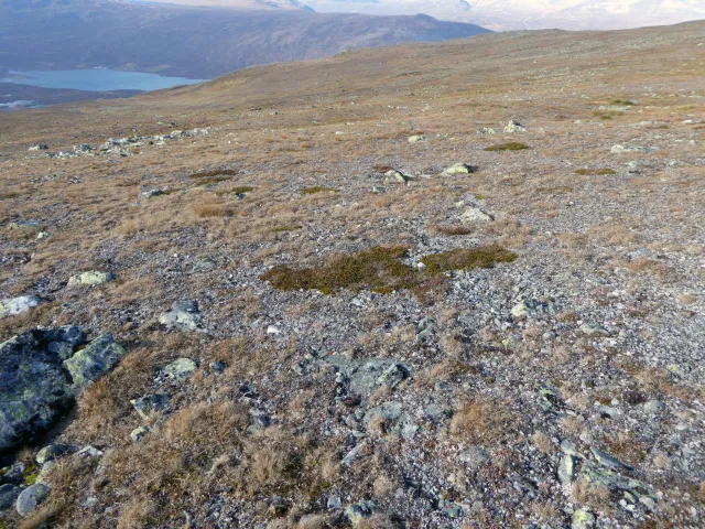 Oftest lys brun med rødlig framtoning i flyfoto, men dette modifiseres mot grått ved høyt innslag av blokk eller lav. Kan dekke store sammenhengende arealer, særlig i mellomalpin. Farge og tekstur konsistent i alle regioner, men varierende lavdekning gir forskjeller.