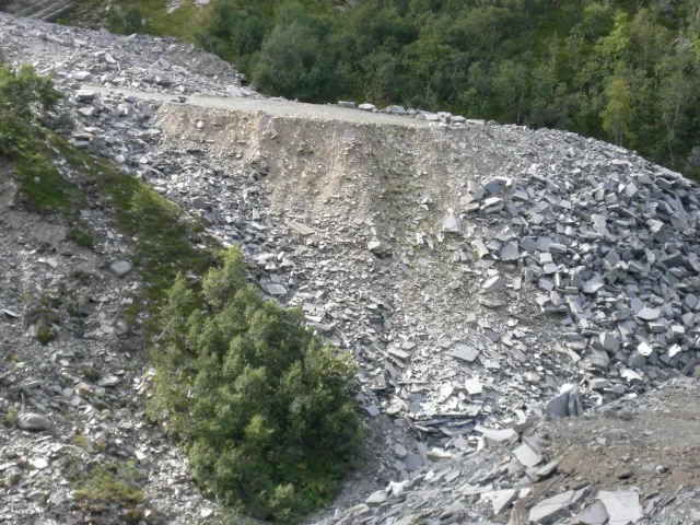 Kartleggingsenheten forekommer oftest i tilknytning til utbyggings- og industriområder og annen infrastruktur. Den skilles fra omkringliggende vegetasjon ut fra avvikende form, struktur og farge. Fargen er som regel lyst grå. Bratte flater vanskelig å se i flyfoto.