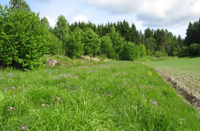 Blomsterrike slåttenger er habitat for Pachyprotasis variegata. Fra Kirkeby i Maridalen, Oslo.