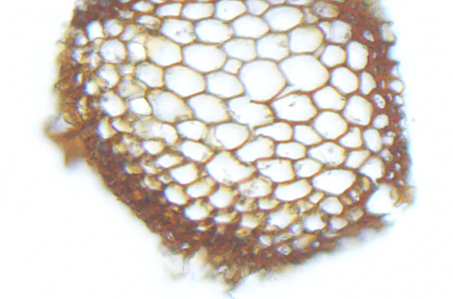 A: Ryggsiden (dorsalt) av nerven er glatt uten papiller. B: Tverrsnitt av blad. C: Tverrsnitt av stengel uten sentralstreng.