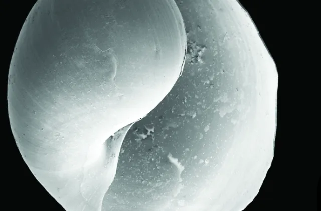 Skallets ventralside (SEM), målestokk = 0,5 mm.