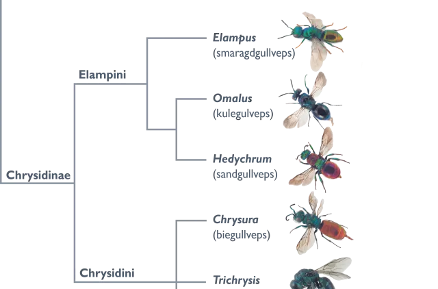 Slektskap mellom de viktigste slektene av gullveps i Norge.