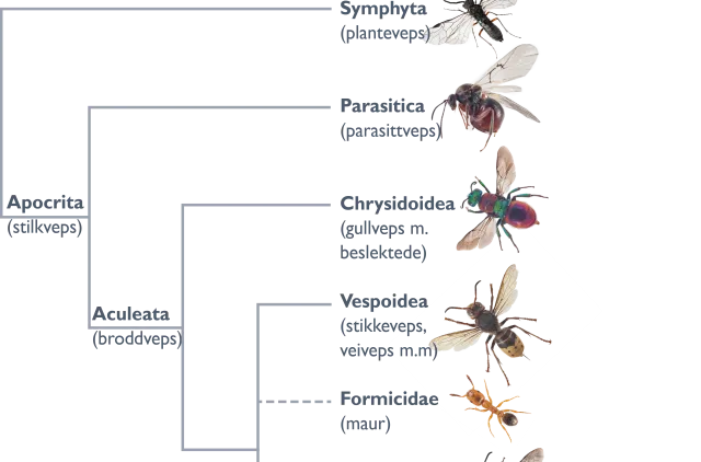 Slektskap mellom hovedgruppene av veps.