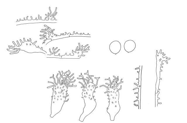 Hatthudshyfer, sporer, cheilocystidier, stilkhudshyfer med caulocystidium.