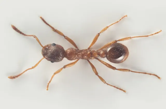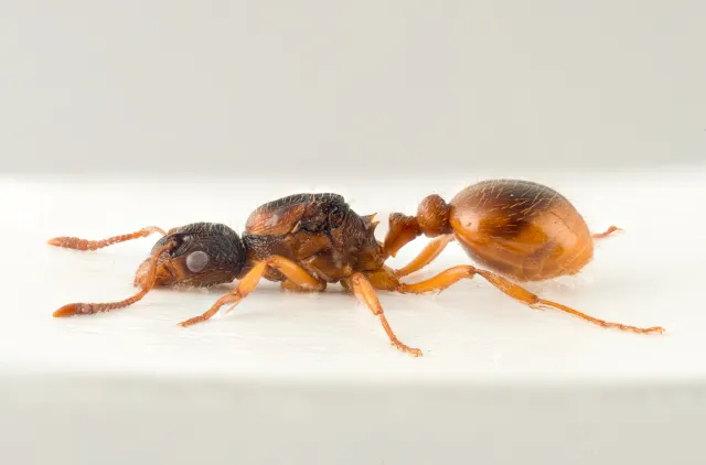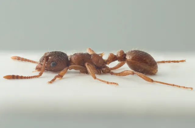 Arbeider av hageeitermaur Myrmica rubra, fra siden.