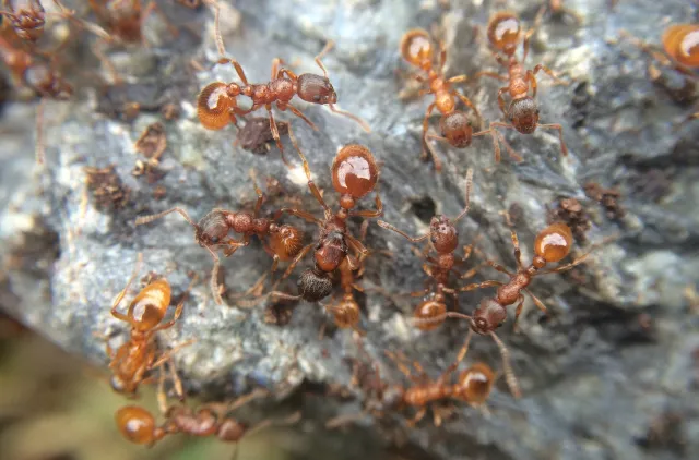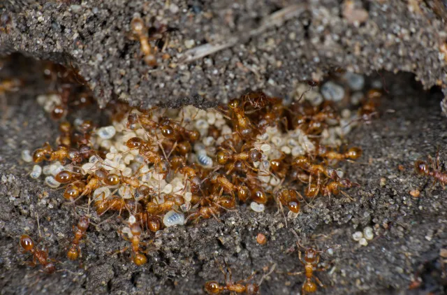Koloni av hageeitermaur Myrmica rubra. Jeløy, Moss i Østfold.