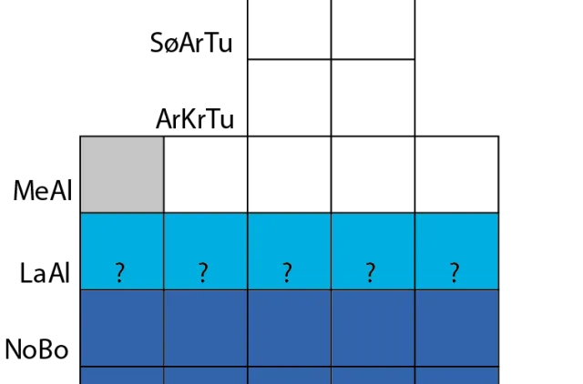 Gruppe: Svakt sørlig. Fastlandet: BoNe, SøBo→NoBo, (?LaAl); StOs→SvOs, OsKo, SvKo. Vanlig under skoggrensen gjennom mesteparten av fastlandet fra Øs og AA/VA til Fi, men få funn fra Tr og Fi. Nordgrense Fi: Hammerfest, NoBo/SvOs.