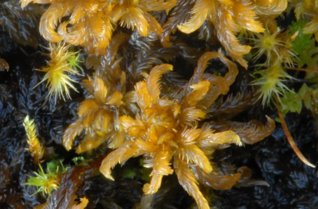 Skudd små (til mellomstore), i små matter. Hoder varierende gulbrune, brunoransje til brungrønne, noe til tydelig hvelvede, utydelig 5-delte. Toppknopp utydelig til oftest skjult av innoverkrøkte, spisse innergreiner. Mellom- og yttergreiner oftest tydelig sidekrøkte, med løst taklagte og markert sidebøyde blad. Greinknipper med oftest 2 utstående og 2–4 spedere, jevnlange hengegreiner noe sprikende fra stengelen. Utstående greiner nedoverbuede i øvre del og sidekrøkte. Greinblad ikke-rekkestilte, løst taklagte, tydelig utsperrede og sidebøyde, smalt eggformede, tydelig konkave og innrullet tilspissede; spiss utydelig tannet. Stengel i øvre del gulgrønn til lyst gulbrun, i nedre del lysbrun (til lyst rødbrun), aldri brunsvart. Stengelblad små, trekantet–tungeformede, flate til svakt konkave, skrått nedoverrettede; bladspiss butt avrundet. N = 19. Dioik. Sporehus sjelden. Sporemasse lysbrun.