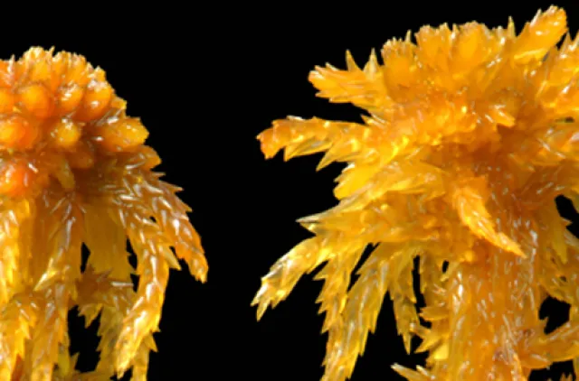 En ensartet gulbrun torvmose med tydelig krøkte hodegreiner med markert sidebøyde blad. Den mest kalkkrevende av våre torvmoser.