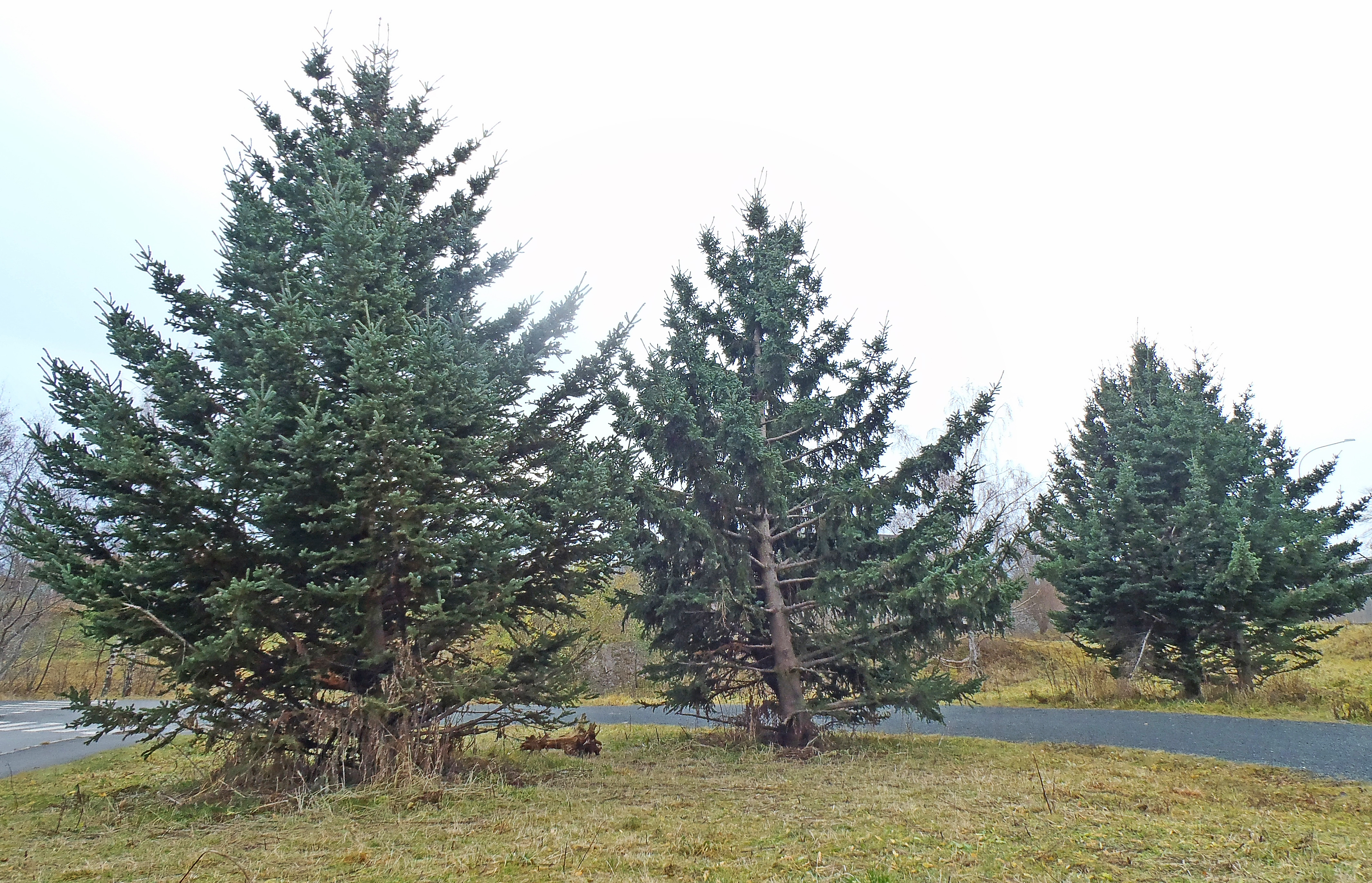 Kvitgran er òg i spreiing ut i norsk natur, her på Orresanda på Jæren.