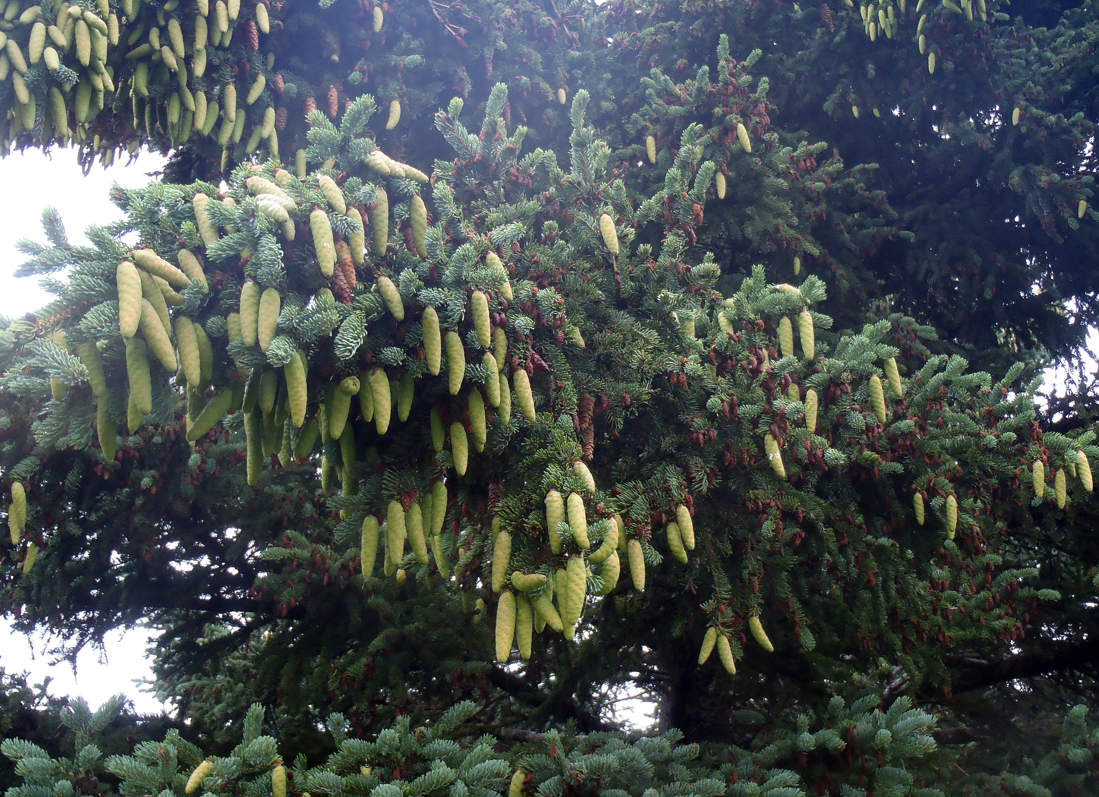 Greinverk og kongler hos kvitgran, her i Trondheim.