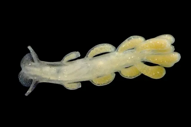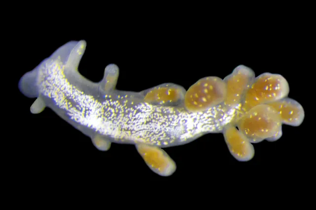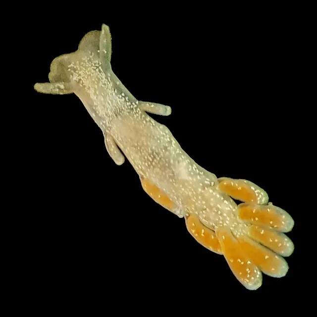 Kroppsfargen er gjennomsiktig hvit med et rosa fargeskjær. Tarmkanalene har ulike farger fra gult til brunt, oransje eller rødt, og de mangler cnidosekker. Ytre pigmentering består av hvite prikker som dekker kroppen og cerata.