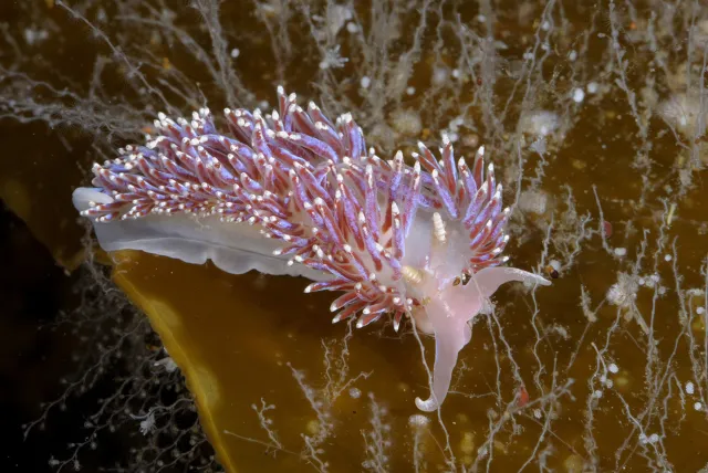 Facelina auriculata er ofte å se på tareblader, og virker å være svært vanlig i Nord-Norge om sommeren.